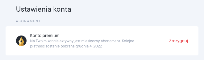 Po potwierdzeniu anulowania abonamentu będziesz nadal mieć dostęp do funkcji premium przez 30 dni od dnia ostatniej płatności miesięcznego abonamentu lub 7 dni od dnia uregulowania opłaty za okres próbny. Po wygaśnięciu abonamentu premium Twoje konto zostanie zamienione na konto bezpłatne.